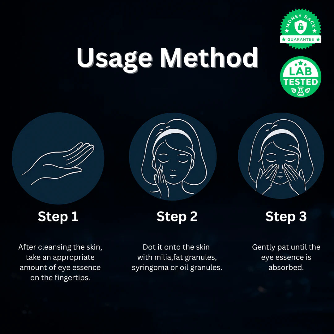 Most products fail because they target oil or acne — but milia are actually keratin cysts, not clogged pores. This serum combines Salicylic and Lactic Acids to dissolve trapped keratin beneath the surface, while Glycerin keeps the area soothed and hydrated for safe, visible results.